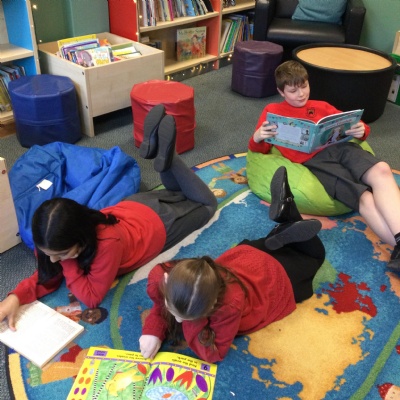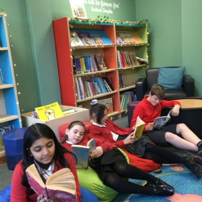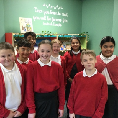 In our wonderful library, we have Book Clubs where Year6 read with our younger children.
