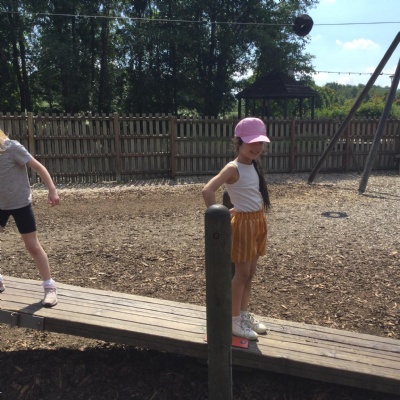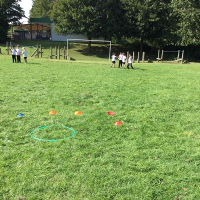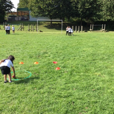 We played beanbag golf in PE. This helped us to master throwing overarm