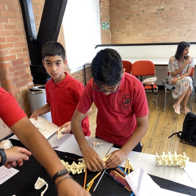 We gradually added weights to each bridge until it collapsed! All the bridges carried at least 1000g, and the winning bridge supported 1900g! It was very tense! There were prizes for the top team in each category.