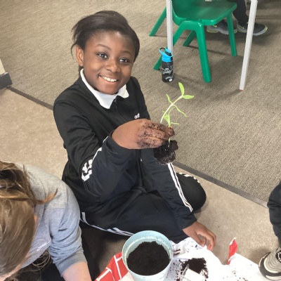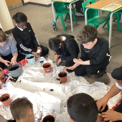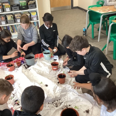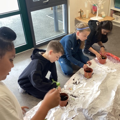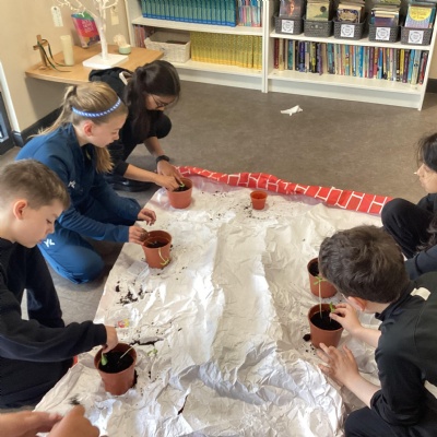 Planting our sunflower seeds