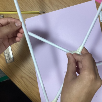 We brought our plans to life and adapted them when we needed to. We used art straws of two different sizes and masking tape. We used what we had learned about different types of trusses, including warren, Pratt and lattice.