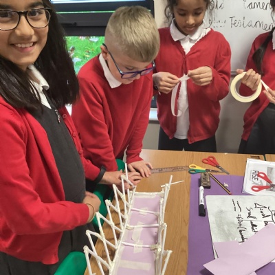 Year 5 have started their Bridge Building unit in DT. They have been making warren trusses using art straws..