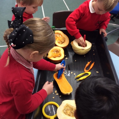 Together, we collected Autumn leaves. We tried to find as many different colours and shapes that we could. We even discovered mushrooms growing on our school field! We found that sycamore seeds 'fly' and spin when the wind carries them. They look like helicopters.