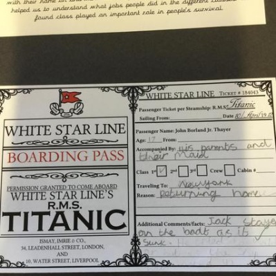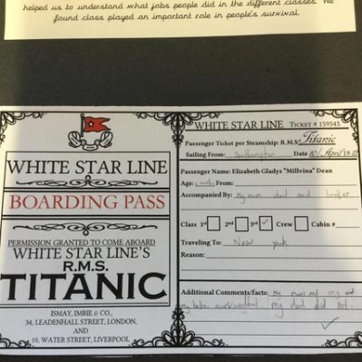 Once we all had a name each we needed to find out about that person. We researched their age, class and their job. We found out where they got on the ship and their reason for going to New York. Finally we found out if they survived, it was very interesting. We added this information to our very on boarding passes.