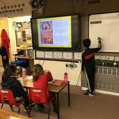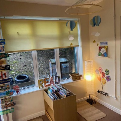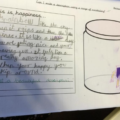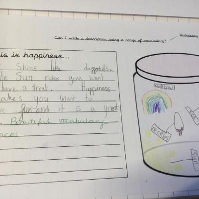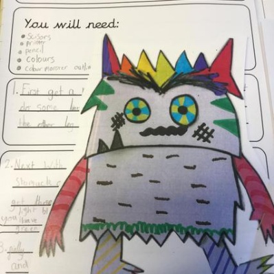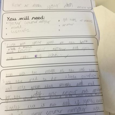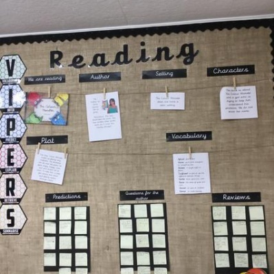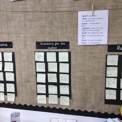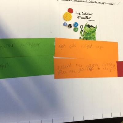 Our reading working wall, we are currently reading The Colour Monster.