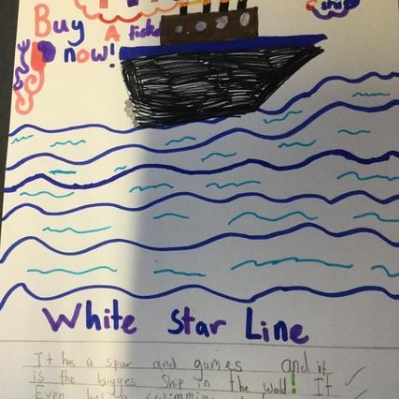 To start our new topic all about the Titanic, we have been learning about the construction of the ship. We explored design features and why it was named 'the unsinkable ship'. To show our understanding of this we created adverts encouraging people to buy a ticket.